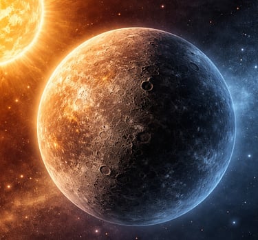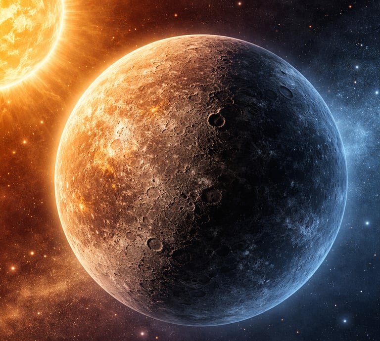 Mercury has extreme temperatures - scorching hot during the day and freezing cold at night because it has almost no atmosphere to trap heat.